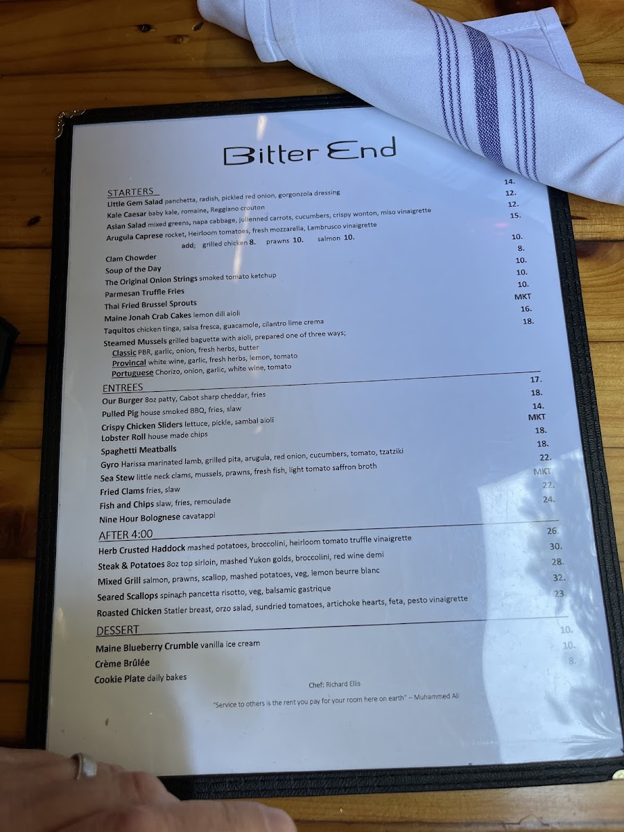 Welcome to Bitter End, a hidden gem nestled in Wells, Maine. This charming restaurant boasts a cozy interior adorned with baseball memorabilia, accompanied by a vibrant outdoor space ideal for summertime dining and live music.